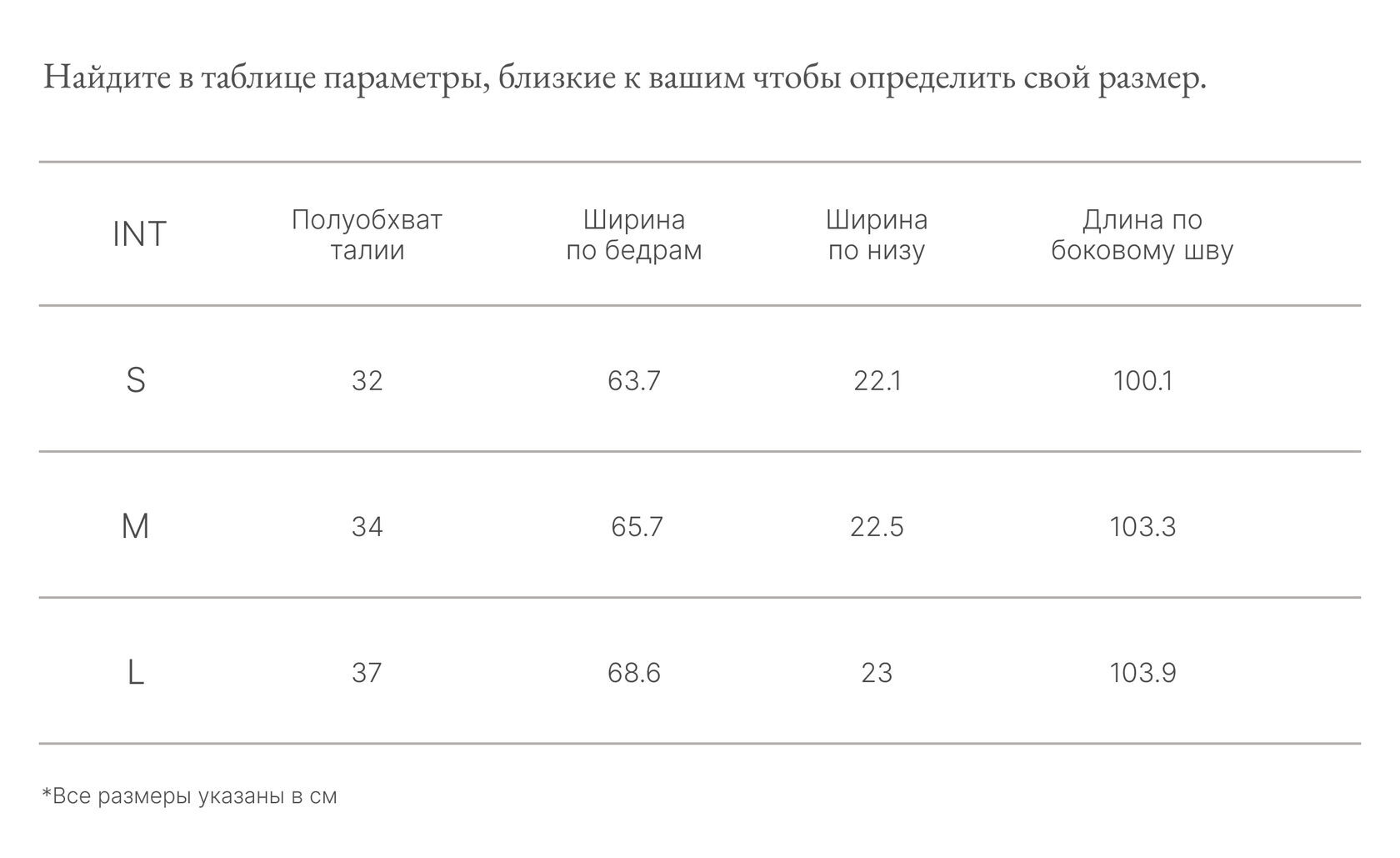 Таблица размеров