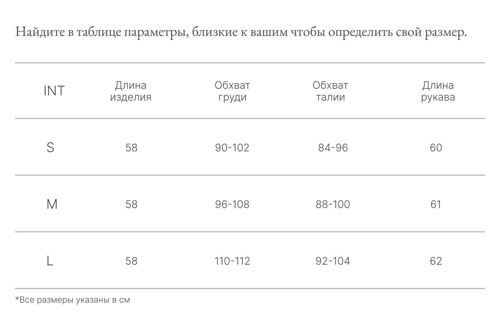 Таблица размеров